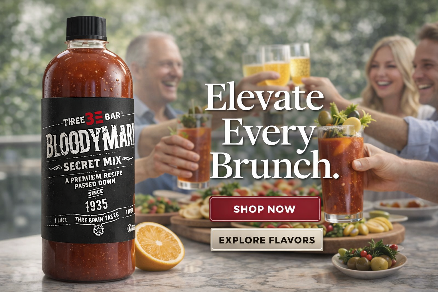 Since 1935, Three Bar Mix Co. has crafted a rich, perfectly balanced Bloody Mary mix — now delivered straight to your door with free U.S. shipping.